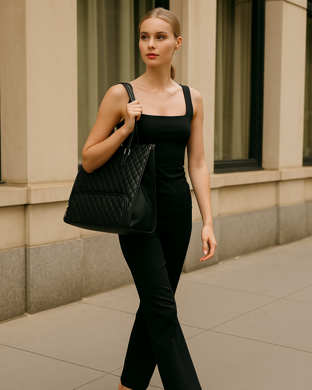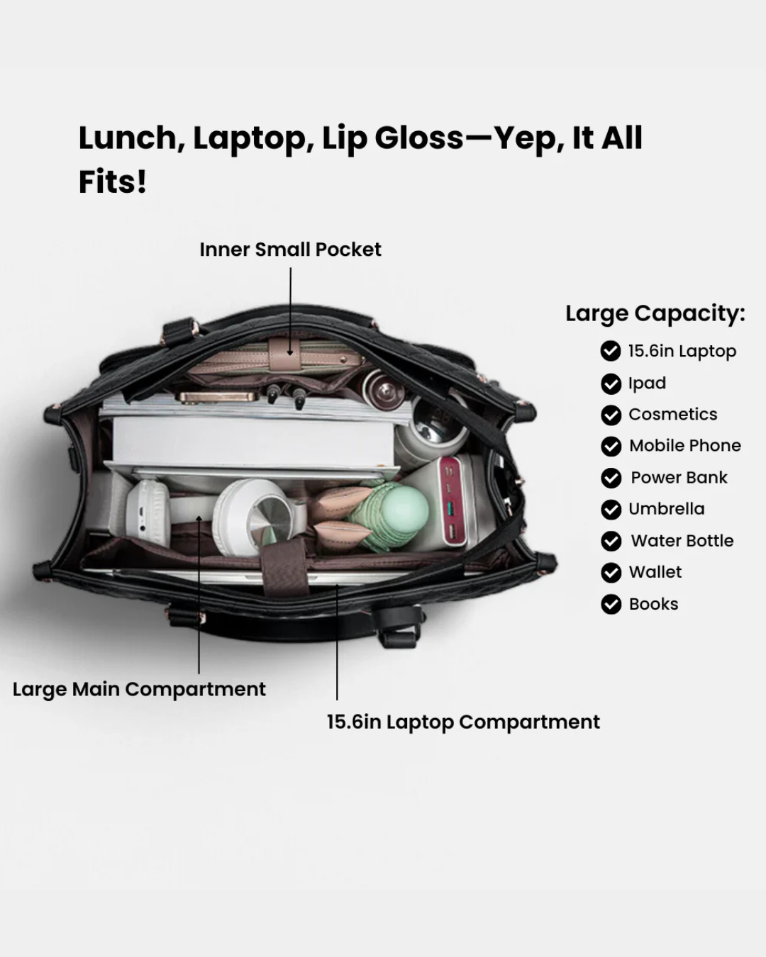 The roomy main compartment easily fits a 15.6-inch laptop, plus notebooks, chargers, makeup bags, and more—without feeling bulky. Ideal for work, travel, or busy days on the go.
