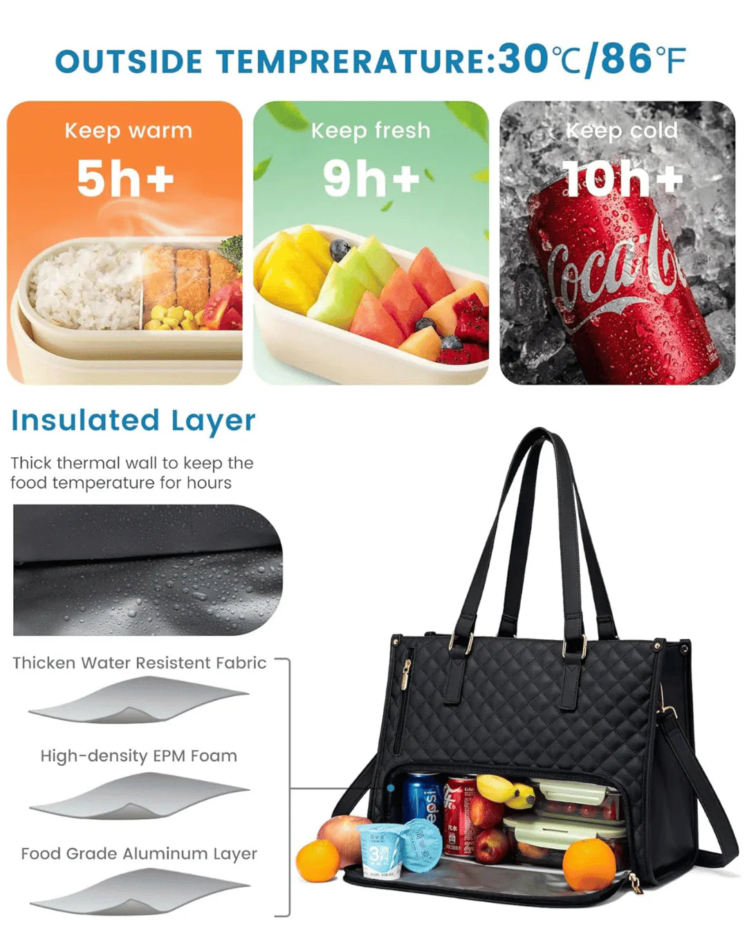 Whether it’s hot meals, chilled drinks, or on-the-go snacks, this tote keeps everything at the perfect temperature for hours, thanks to built-in insulation.
